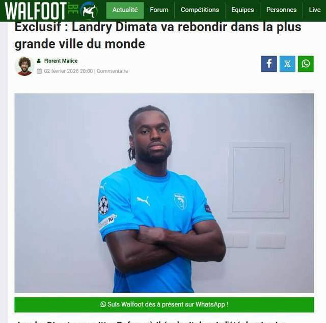近日,又一位曾与武磊并肩作战的西甲队友即将登陆中超赛场。根据比利时法语区知名媒体walfoot资深主编马利斯的爆料,比利时球星迪马塔将以250万欧元的租借费加盟今年刚升入中超的重庆铜梁龙。这位新援身具三大亮点,不仅彰显出他卓越的实力和潜力,也象征着中超后金元时代又一笔重磅签约,同时为这支升班马球队注入强劲动力,堪称他们期待已久的“大杀器”。